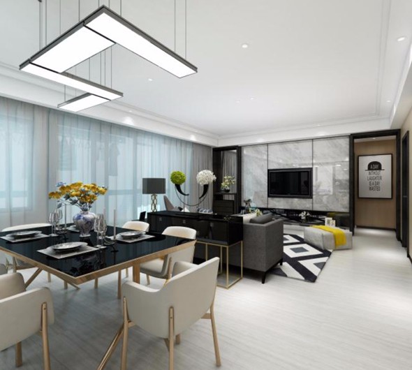 本案重点在于创造空间美,简洁的面与面结合创造出空旷的感觉,简单的线条通过高品质的材料与精细的做工来表明生活的态度。房屋公共空间采用开放式设计,从厨房到餐厅客厅整合为一个大的空间,增加了空间的流动性。在材料、质地和颜色的选用体现了简约素雅的色调,软硬材质的搭配,现代与传统结合,空间的碰撞与融合,理想与现实,生活与梦想和谐统一。加上灯光的处理合理的排布,使整个空间简洁高雅宁静,创造自然透明,多变空间及深厚的文化气息是本案的精髓所在。